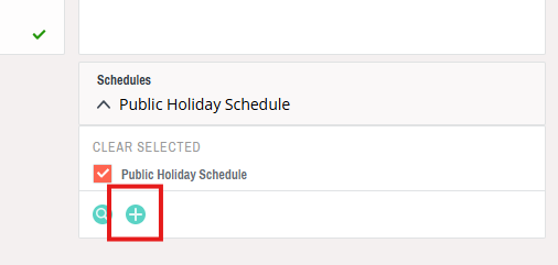 Note: Before a Surcharge will apply it needs to be scheduled. Either choose an existing schedule from the list or create a new schedule via the "+" icon under the Schedules field.