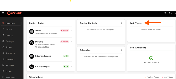 Step 1. From the Chewzie dashboard, click on 'View Wait Times'.