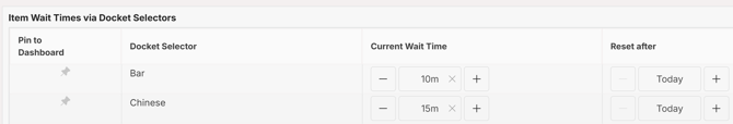 This feature allows you to quickly adjust wait times on the overall venue, or for specific product docket selectors.